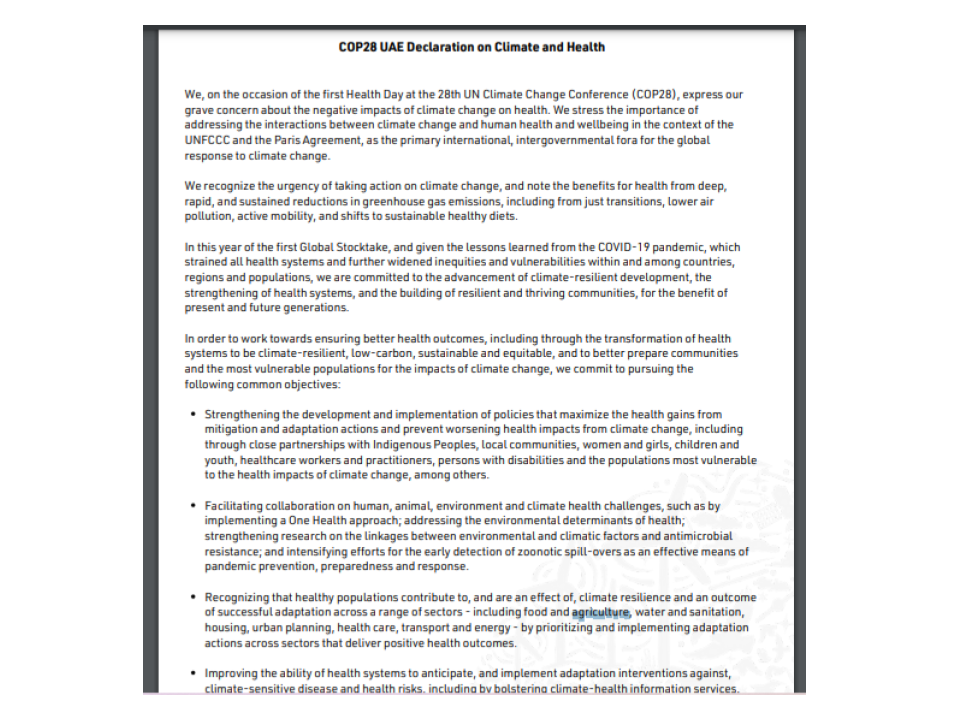 Prevention Web. Declaración COP28 sobre clima y salud. 8 de diciembre de 2023.