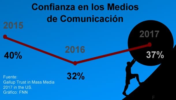 Pero hablemos de la credibilidad y confiablidad. La encuesta anual de Gallup sobre Confianza en los Medios en EE.UU. pasó de 40% en 2015 a 32% en 2016 (el menor registro en toda la historia de esta encuesta desde su inicio en 1971). Luego, el año pasado subió auspiciosamente a 37%.