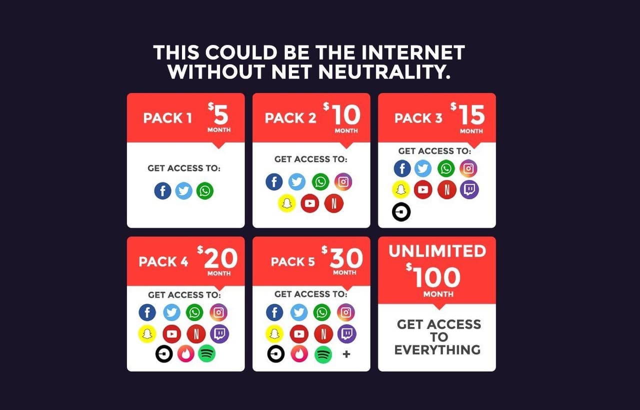 Es posible que haya que pagar más para acceder a ciertos websites y social media por el lado del usuario, o pagar más para que un website esté en la vía rápida por el lado de los generadores de contenido.
