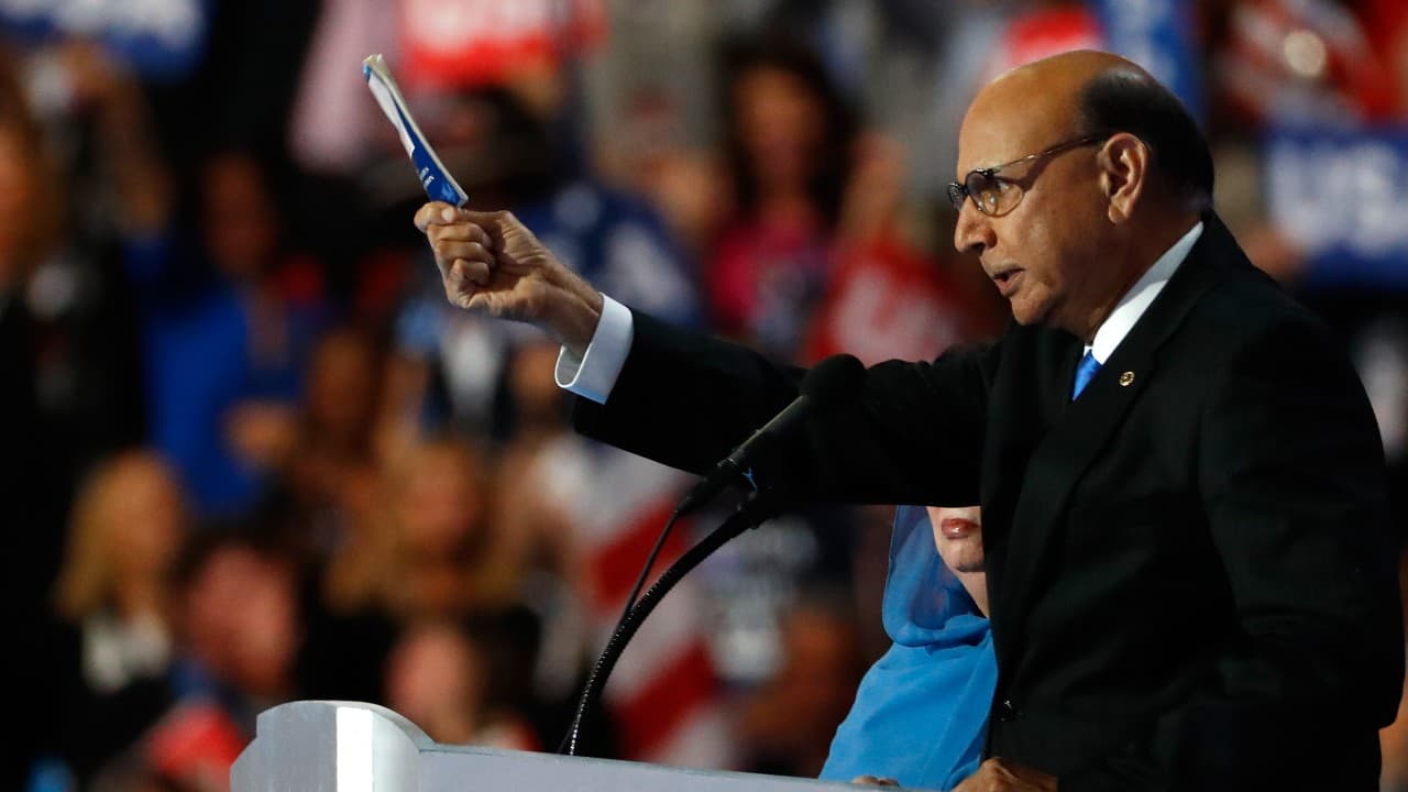 Khizr Khan, un abogado musulmán quien perdió a su hijo Humayun en Irak en 2004, dio un emotivo discurso contra el veto a los musulmanes. El hombre se convirtió en uno de los rostros de la resistencia a Trump cuando le preguntó si alguna vez había visitado el cementerio de Arlington durante la Convención Nacional Demócrata.