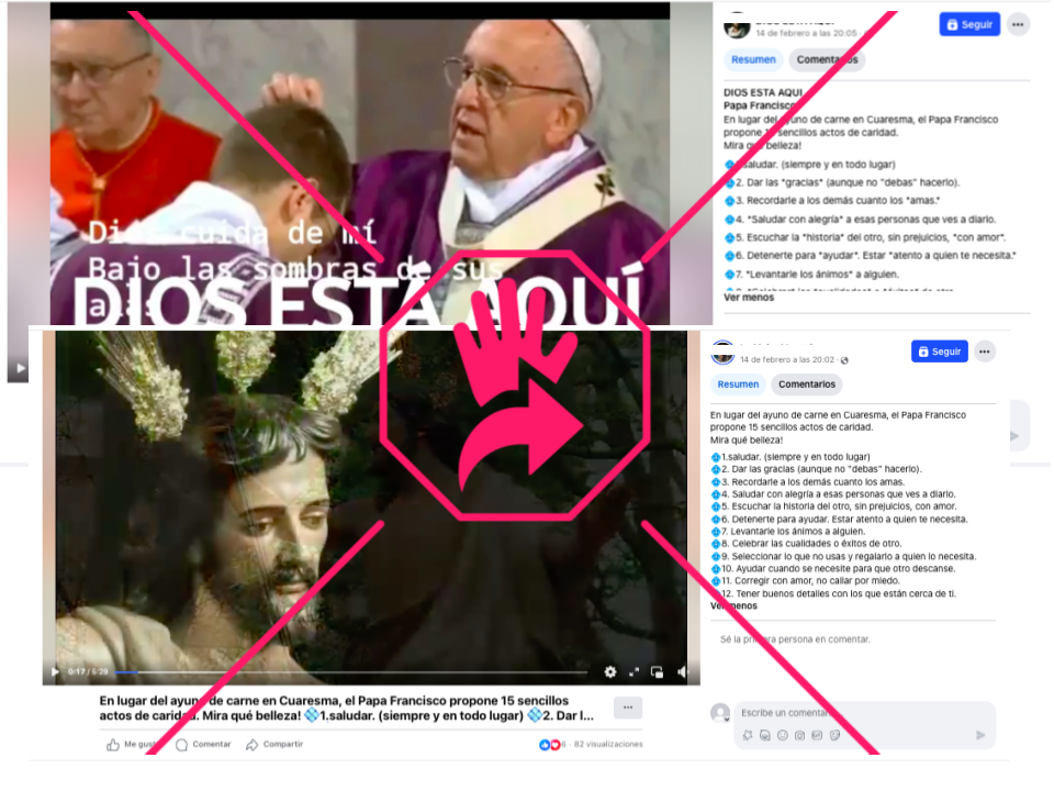 Publicaciones en Facebook aseguran que el papa Francisco propuso “15 sencillos actos de caridad” y una serie de ayunos simbólicos —como evitar descontentos, enojos y pesimismo— en lugar “del ayuno de carne en Cuaresma”. Sin embargo, esto es falso: el mismo texto difundido en esos posts circula desde hace años en redes sociales y ha sido desmentido en otras ocasiones. En 2023, la Agencia Católica de Informaciones incluso encontró un escrito publicado en 2009 en el que aseguraron se basa el mensaje difundido en redes sobre los ayunos simbólicos y otro de 2015 sobre los actos caritativos, también atribuido erróneamente al papa.