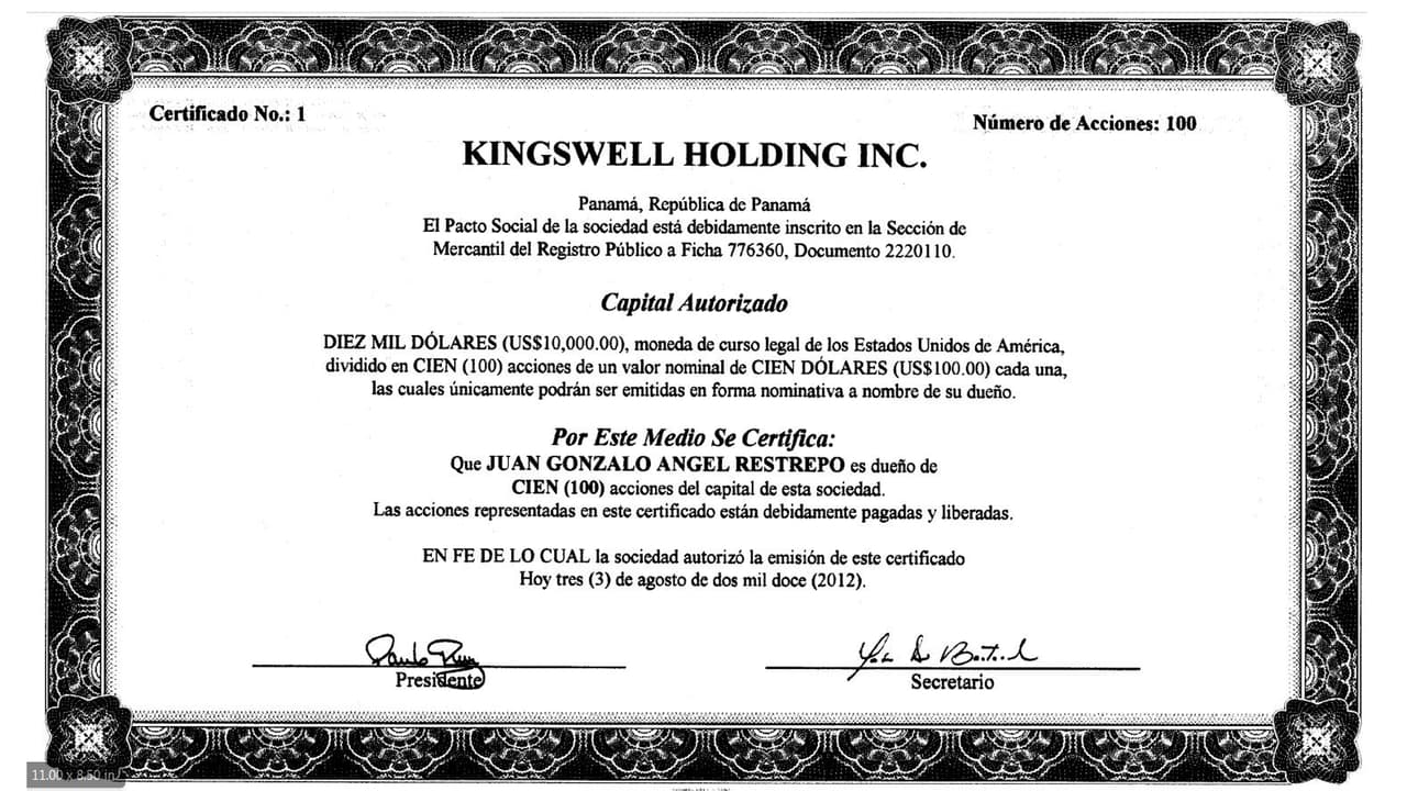 Mossack Fonseca constituyó en 2012 la sociedad Kingswell Holding Inc de la cual Ángel es el primer beneficiario. Actuaron como directivos de la empresa algunos de los empleados de la firma de abogados, de acuerdo con los documentos revisados por Univision.
