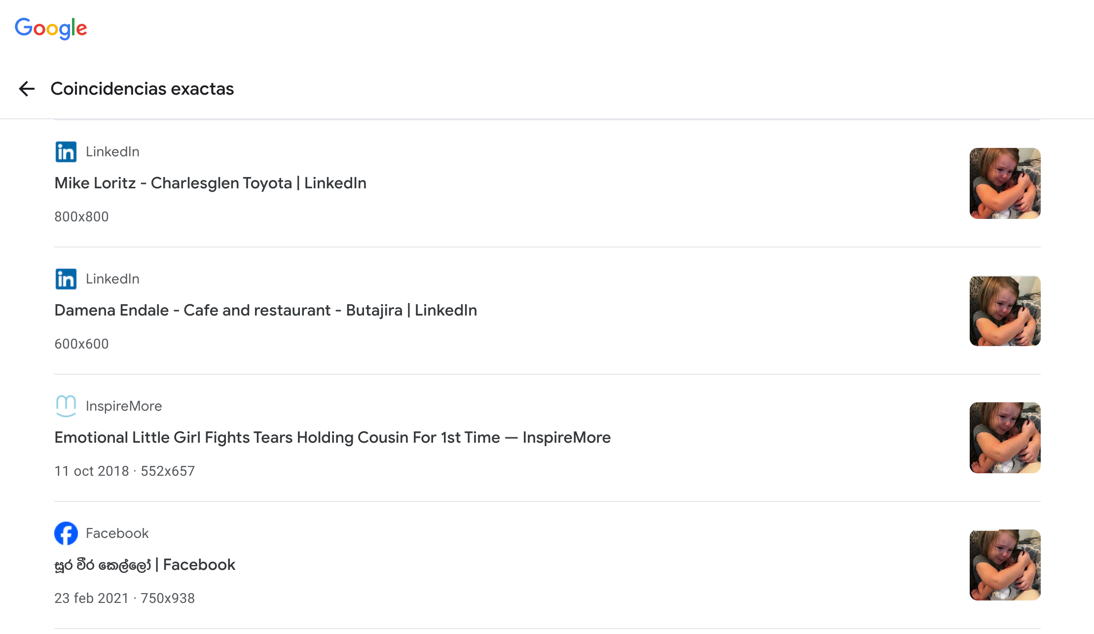 Una última búsqueda inversa de imágenes en Google, esta vez con la foto de la pequeña abrazando emocionada a un bebé, revela que se trata de una menor desbordada de felicidad por sostener a su prima recién nacida, no a su hija supuestamente después de haberla parido. Uno de los resultados nos lleva a una web donde relatan la historia de la pequeña y facilitan la cuenta de Instagram de donde se tomó la instantánea.