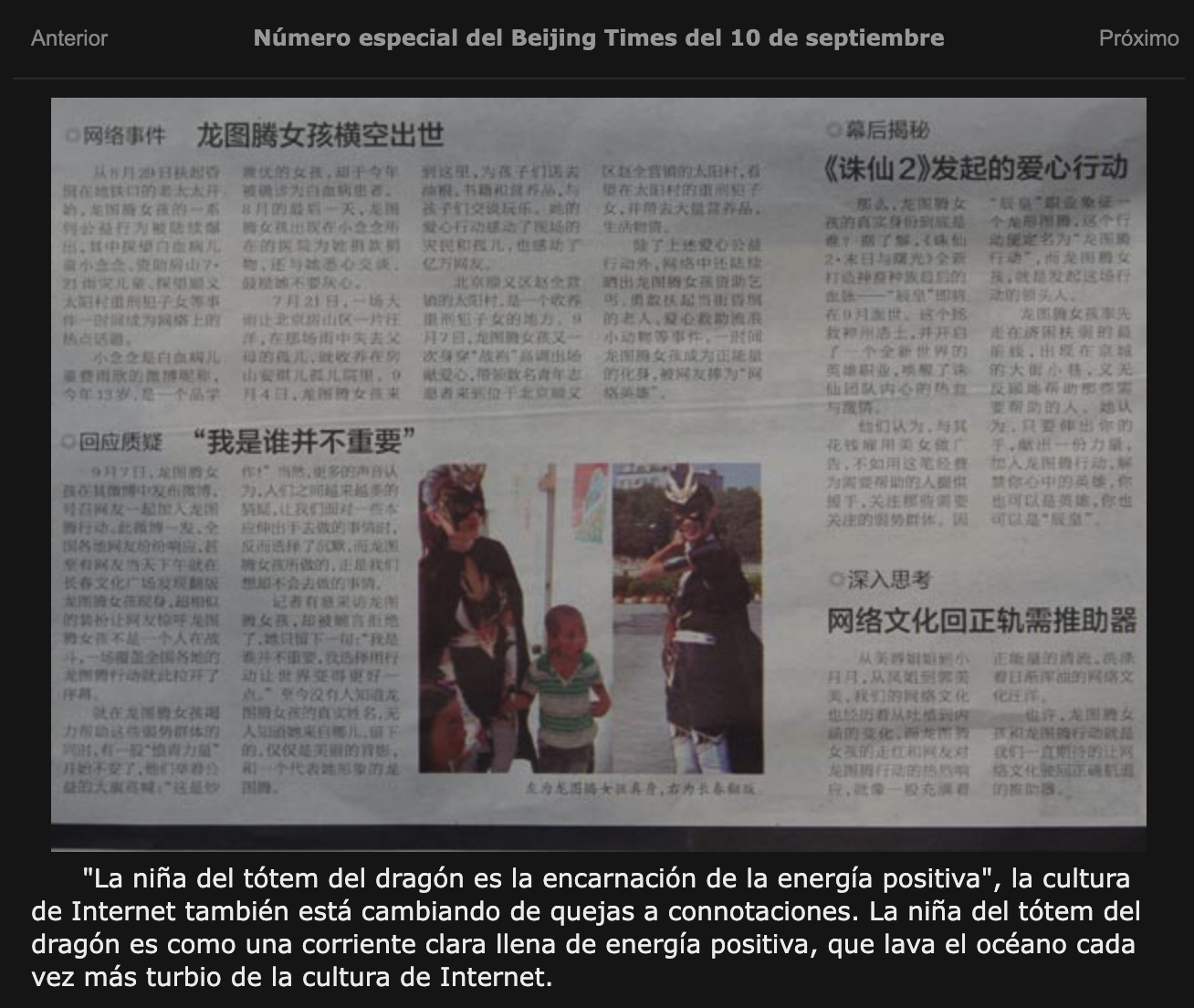 Esto concuerda con el título del primero de los videos que aparecen en la búsqueda, del 19 de septiembre de 2012: “Teletransportación - El Avatar Tótem Dragón Girl”. En la descripción del mismo se facilita una web, x.wanmei.com, que está desactivada o no funciona.