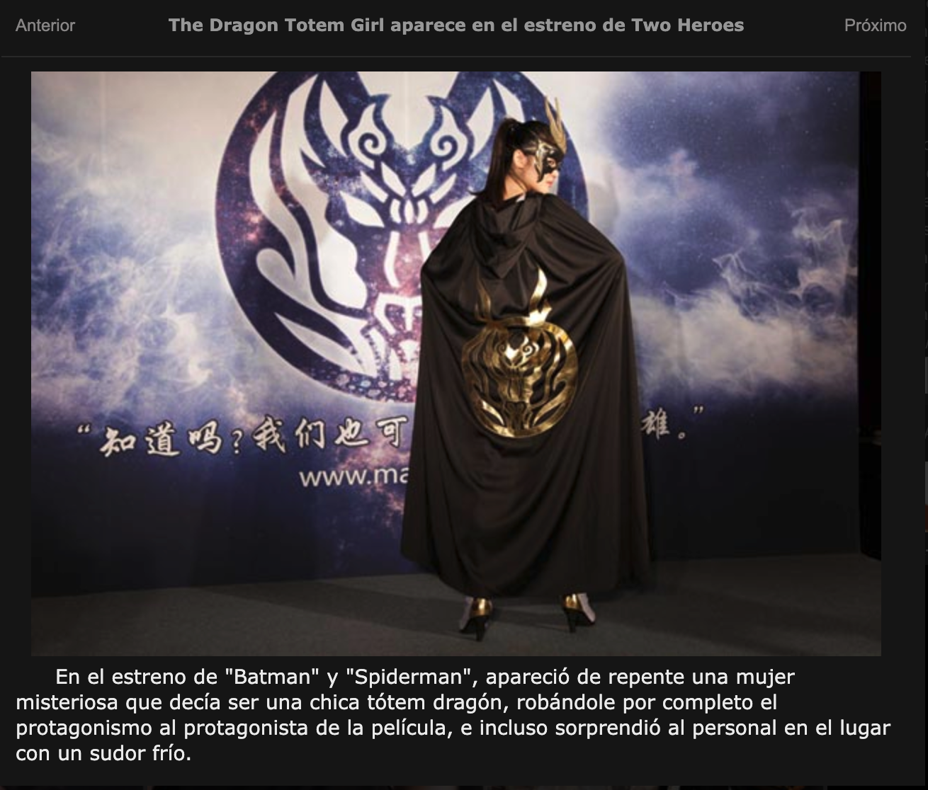 Una búsqueda en Google con las palabras, en inglés, “chica totem dragon juego” facilita una serie de webs que señalan que la Chica Tótem Dragón es un personaje de un videojuego (y se ven imágenes del personaje desarrollado con animación). En uno de esos sitios se explica que, como estrategia de promoción, la empresa, grabó videos con una persona que se parece al personaje principal del juego, para mostrar el uso de “sus superpoderes en una vida normal”.