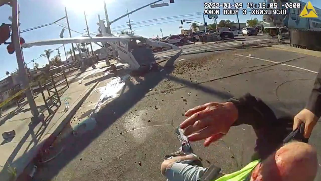 El oficial Christopher Aboyte fue uno de los policías de Los Ángeles que protagonizó el heroico rescate del piloto de una avioneta segundos antes de que un tren pasara y se llevara los restos de la aeronave siniestrada. El uniformado relata lo que sucedió una vez llegaron a la escena del accidente.