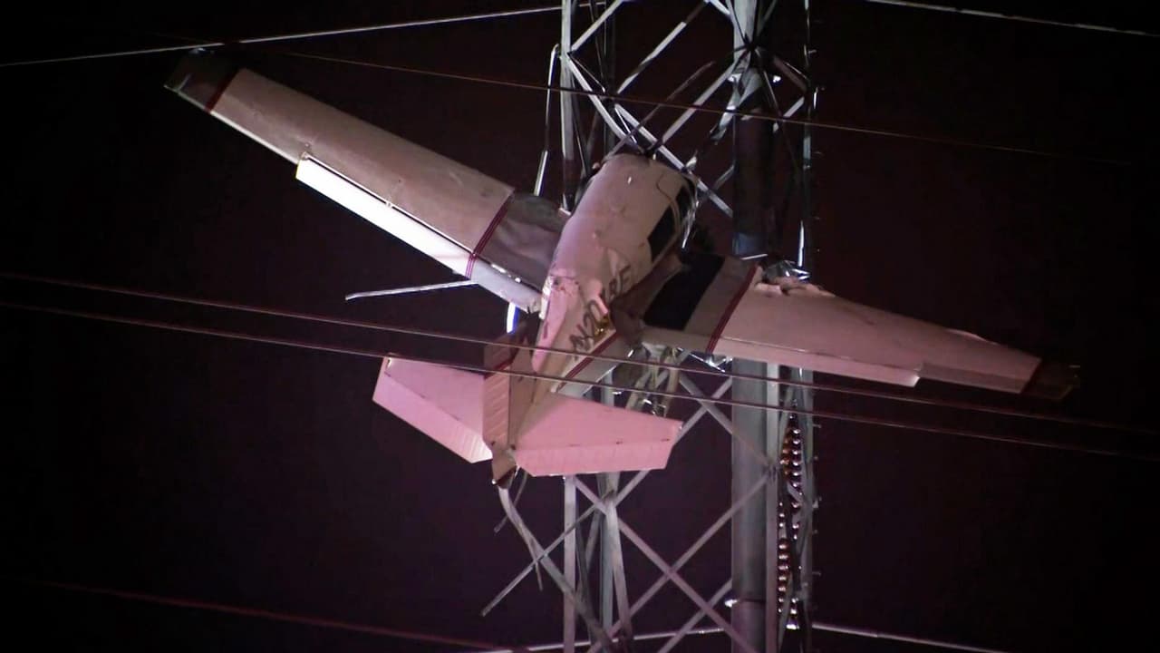 Dos personas fueron rescatadas en la madrugada de este lunes luego de que una avioneta se estrellara contra una torre de electricidad en el condado de Montgomery, en Maryland. La aeronave quedó atrapada entre cables de alta tensión a unos 100 pies de altura. El piloto y un pasajero fueron hospitalizados con heridas graves e hipotermia. Sigue las últimas noticias en
