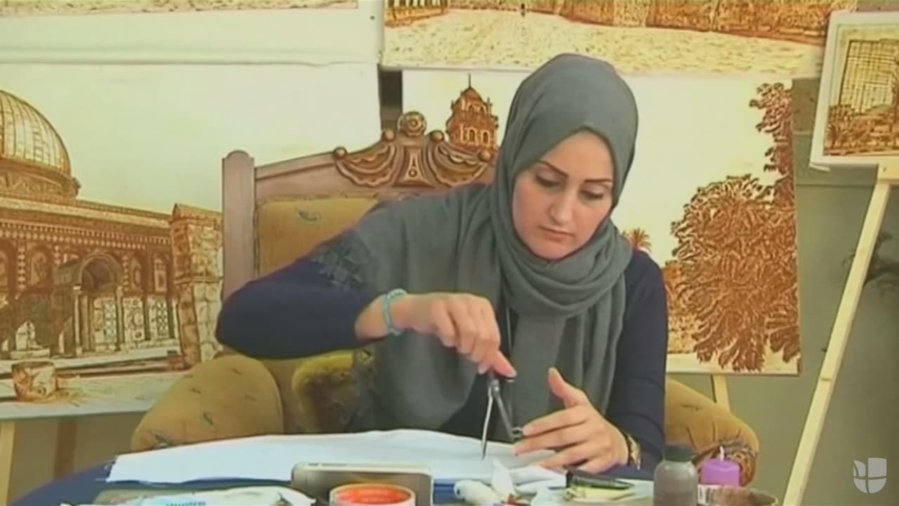 Fatima al-Ghoul utiliza henna para crear impresionantes pinturas de paisajes palestinos.