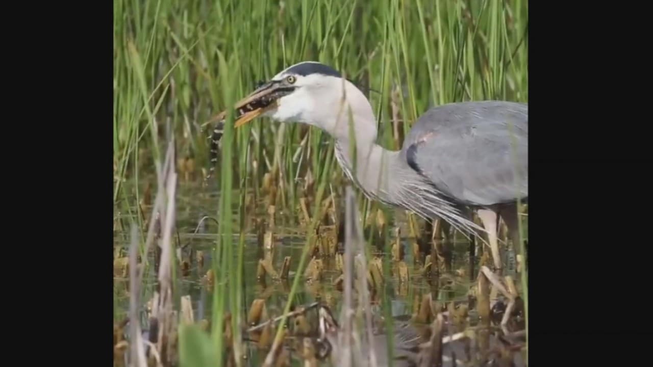 El fotógrafo Scott Martin grabó este video en Melbourne, Florida y dijo que la garza azul jugó por unos 20 minutos con el pequeño lagarto antes de matarlo y tragárselo en segundos. Las garzas azules comen peces, anfibios, reptiles, insectos, pequeños mamíferos y otras aves.