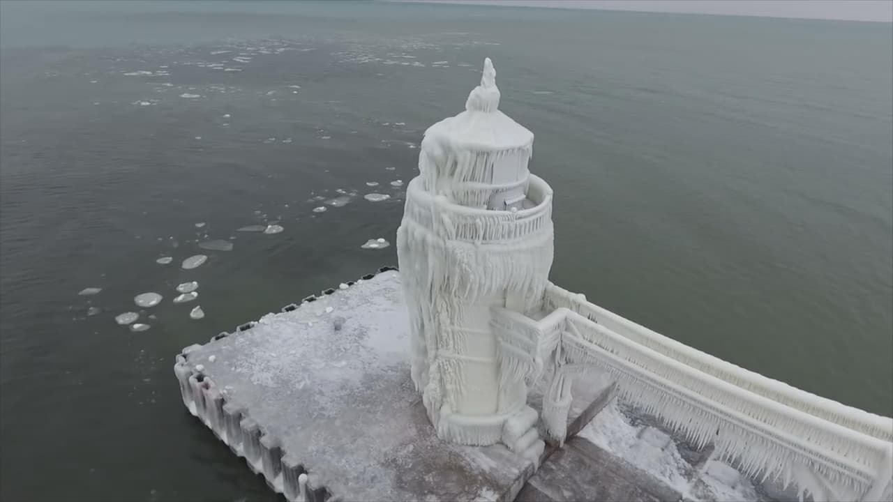 El asombroso paisaje se encuentra en Saint Joseph en el estado de Michigan. El faro fue construido en 1859 al final de un muelle de madera que se extiende dentro del lago Michigan y suele congelarse por el oleaje que lo baña constantemente unido a las temperaturas extremas.