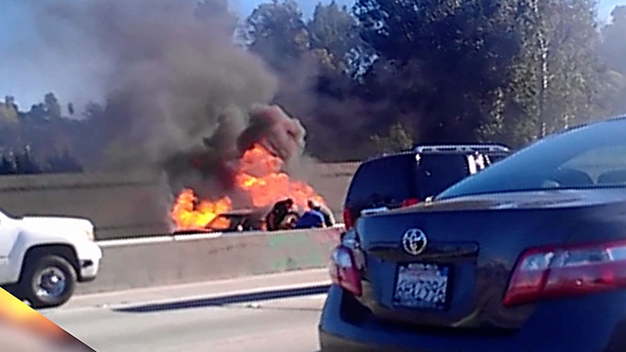 Policía de Los Ángeles rescata a un hombre atrapado en su auto en llamas