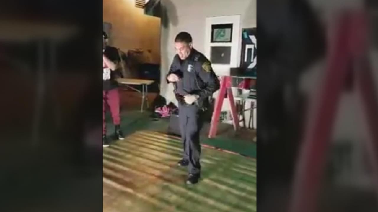 El oficial acudió al sitio luego de recibir una llamada de alguien que se quejó de la música fuerte. Al llegar se dio cuenta que se trataba de un evento de niños y en lugar de interrumpirlo el oficial pidió que tocaran una canción y demostró a los jóvenes sus habilidades con el baile.