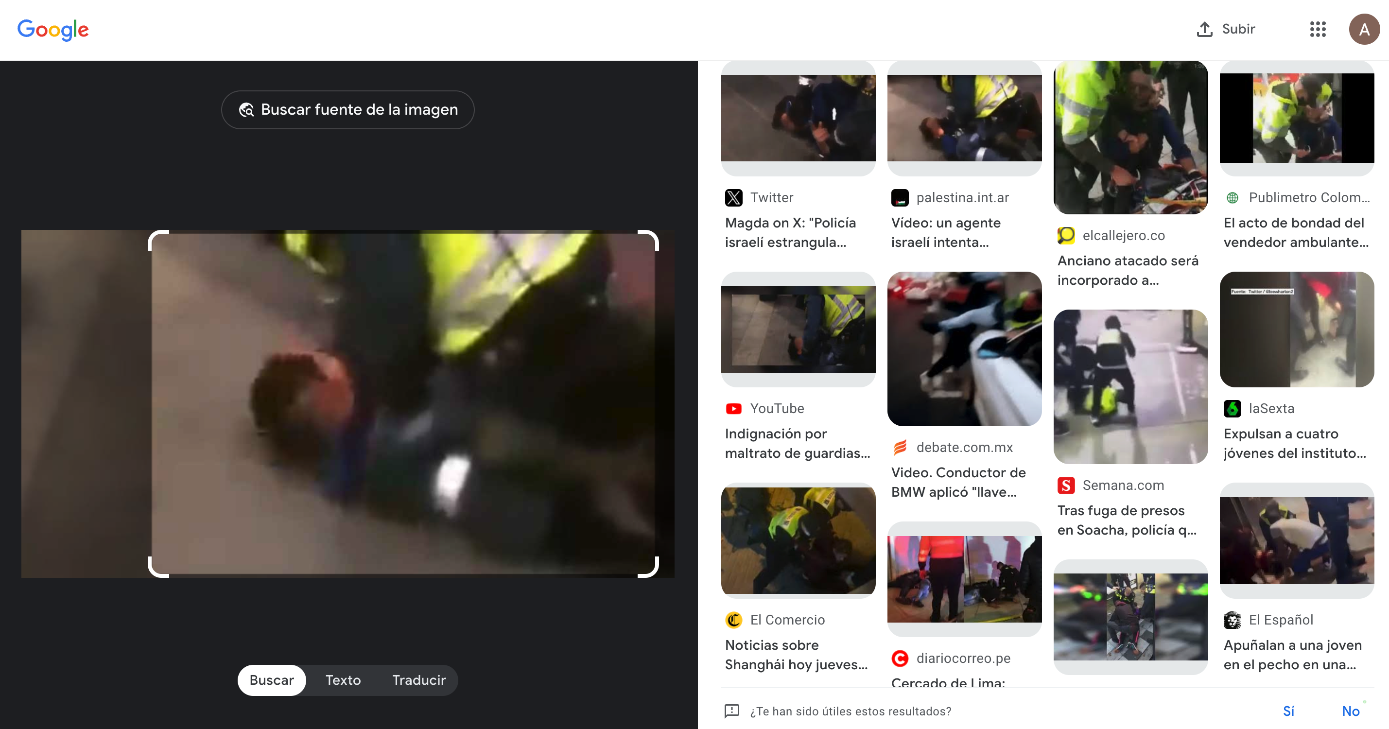 Google. Búsqueda inversa de imágenes con una captura del video analizado. 1 de noviembre de 2023.