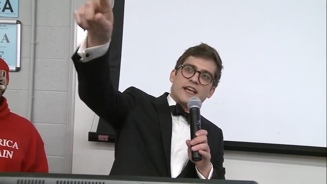 Se trata de Lucian Wintrich, comentarista de la página web pro-Trump Gateway Pundit, quien pretendía plantear a la audiencia un discurso sobre "política de identidad, el victimismo liberal, el sesgo anticonservador y otros temas candentes", de acuerdo con los republicanos de la universidad que patrocinaron el evento.