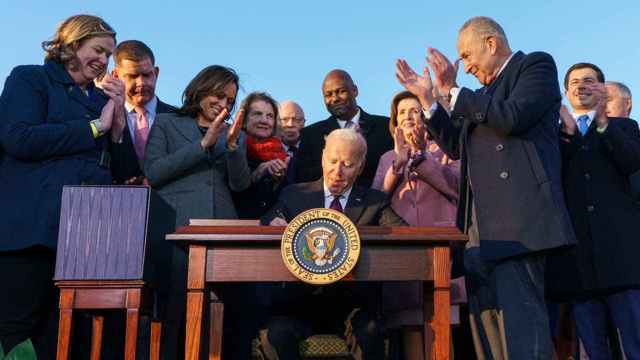 Biden promulgó este lunes su plan de infraestructura de más de 1 billón de dólares ( trillion, en inglés), con el que busca mejorar la comunicación y transportes de Estados Unidos, algo que para el presidente estadounidense es un asunto crucial para la competencia económica con China.