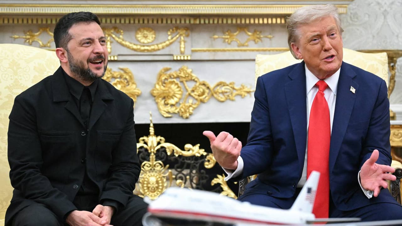 El presidente ucrania está hablando junto con su par Donald Trump desde la Oficina Oval, antes de su encuentro para discutir la guerra de Rusia en Ucrania.
