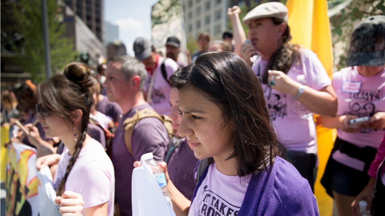 Laura Zúñiga, hija de Berta Cáceres, representa a la organización "Se echan raíces para cambiar" que harán una caravana desde la Convención Nacional Republicana hasta la Convención Nacional Demócrata.