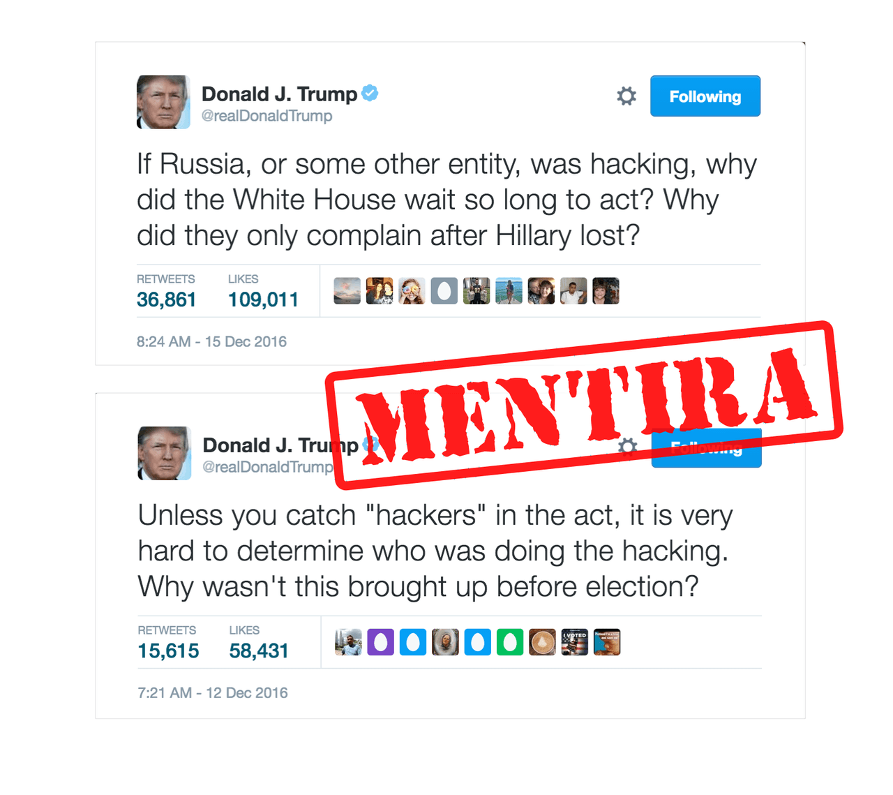 Los engaños en Twitter de Trump: "La Casa Blanca no se quejó del hackeo ruso antes de la elección"