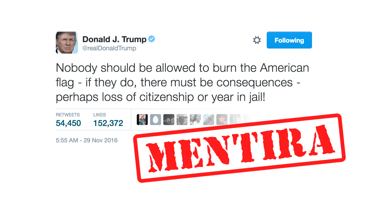 “¡Nadie debería tener permitido quemar la bandera de Estados Unidos – si lo hacen, debe haber consecuencias – quizás pérdida de la ciudadanía o un año en la cárcel!”