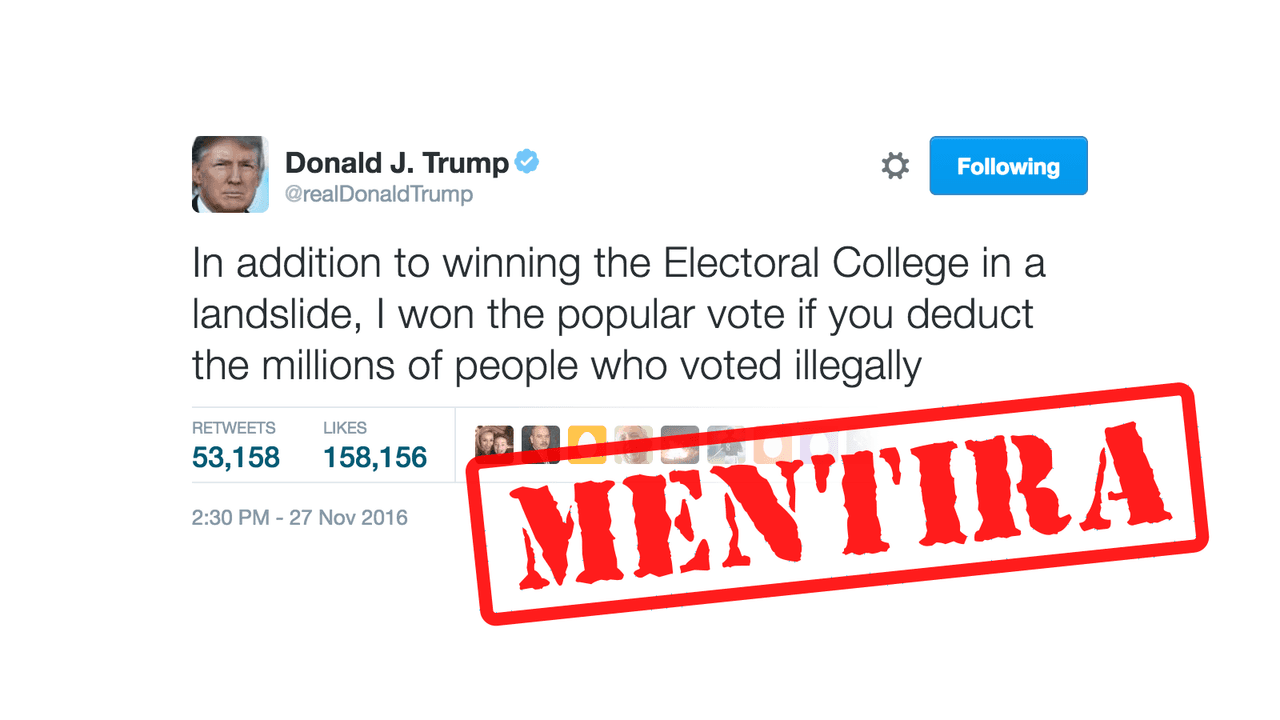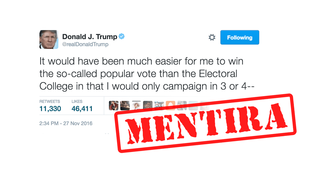 “Además de ganar el Colegio Electoral de forma aplastante, gané el voto popular si deducen los millones de personas que votaron ilegalmente”