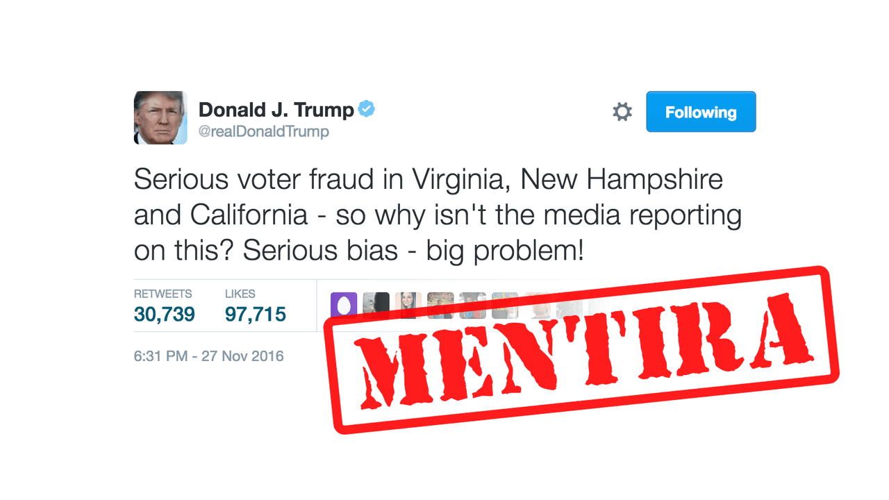 Al igual que lo hizo durante la campaña presidencial, Donald Trump lanzó una delicada acusación sin ningún tipo de pruebas o evidencias al respecto. Pasados casi 20 días de la elección, Trump afirma que millones de personas votaron ilegalmente, y ni siquiera él o algún miembro de su campaña habían levantado alguna queja o sospecha al respecto. Y tras la denuncia, tampoco tienen cómo probar lo que dicen.