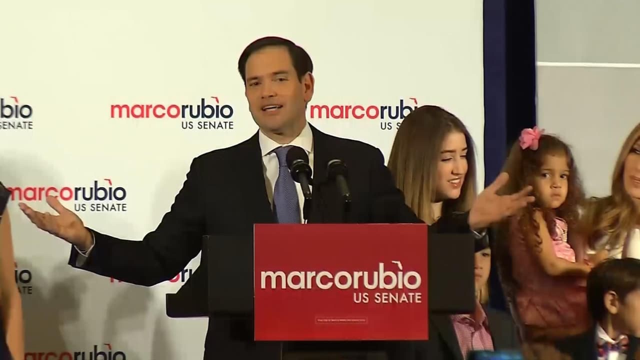 Durante su discurso, el senador dio las gracias en español a los latinos que votaron por él.