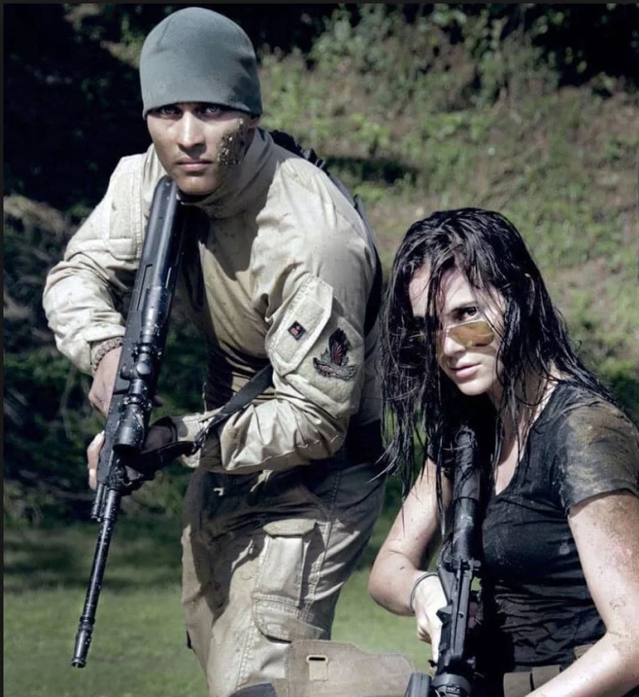 La modelo explicó que las imágenes, en las que ambos llevan fusiles, correspondían a una sesión de entrenamiento militar impartida por Pérez para el elenco de la película Ivana en la que ella participó.