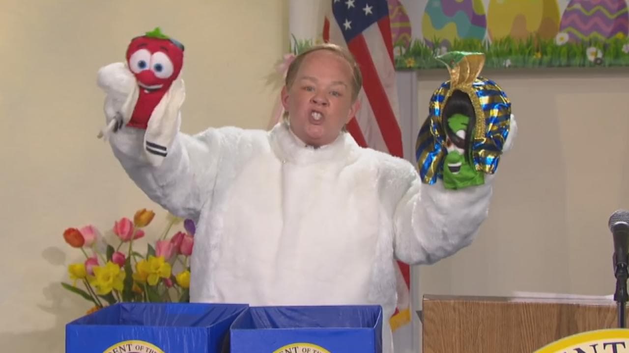 'Sean Spicey', el personaje que hace sátira de Sean Spicer, el vocero de la Casa Blanca, regresó este sábado al show Satudary Night Live y esta vez disfrazado de conejito de Pascua.