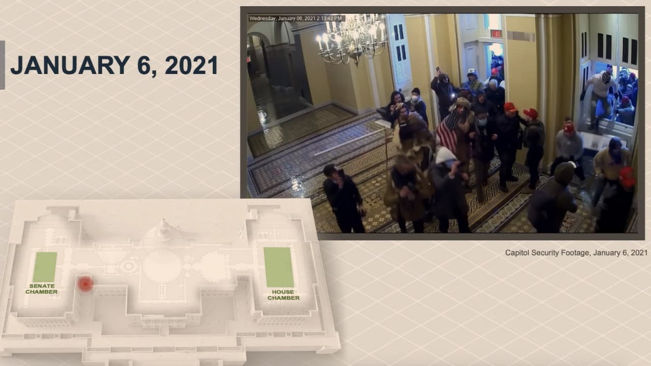 “El vicepresidente fue blanco de la muchedumbre porque él se rehusó a revertir los resultados de las elecciones”, dijo la representante Stacey Plaskett, una de los administradores que presentó diagramas mostrando que los atacantes llegaron a estar a solo 100 pies del lugar donde Pence y su familia estaban resguardados.
