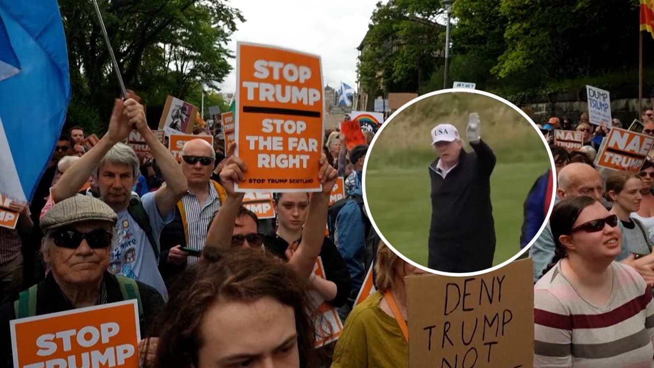 En este viaje, Trump se está alojando en sus propiedades cerca de Turnberry y Aberdeen, donde su familia posee dos campos de golf e inaugurará un tercero el próximo 13 de agosto. Este fin de semana, Trump jugó al golf el fin de semana en Turnberry y el martes asistirá a la inauguración del nuevo campo.