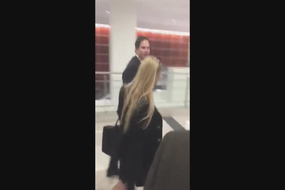 "Necesitamos escucharle, senador. Necesitamos escucharle. Somos electores. ¿Va a presidir la asamblea? Senador, pensé que estaba en Europa. ¿Va a presidir la asamblea, senador?", insiste el activista.