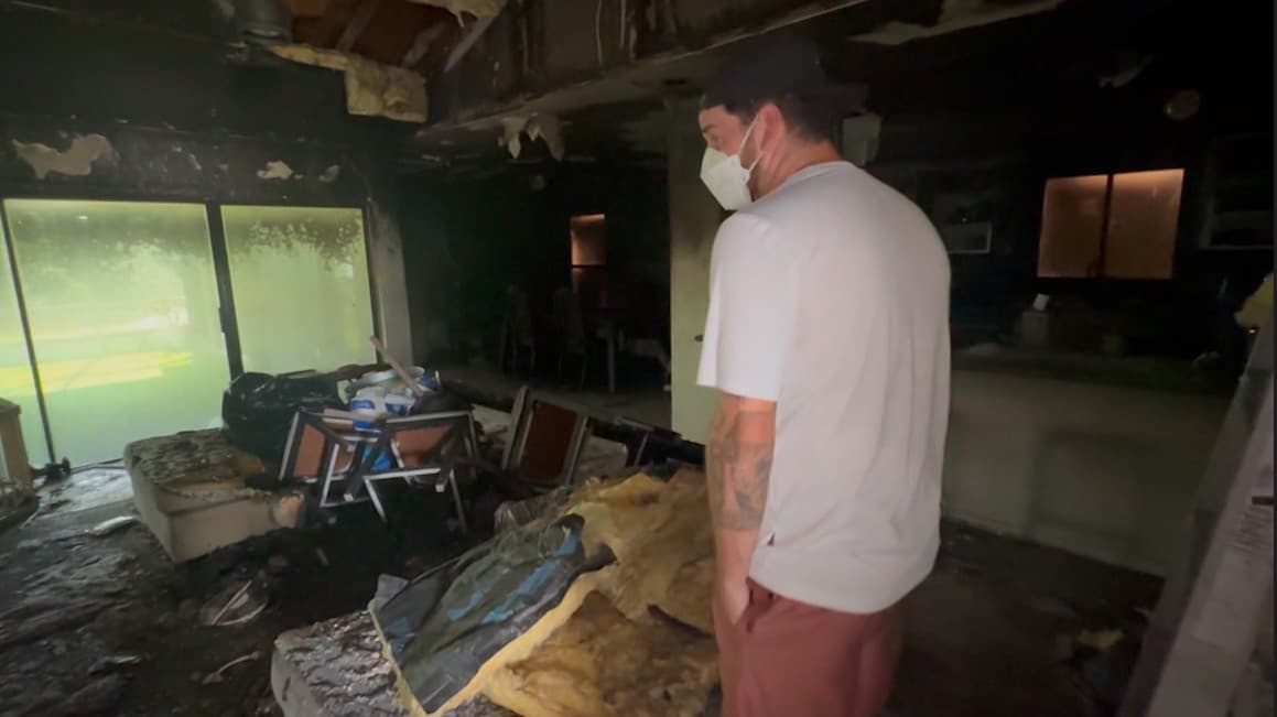 Por culpa de un rayo, su casa quedó destruida y uno de sus perros murió