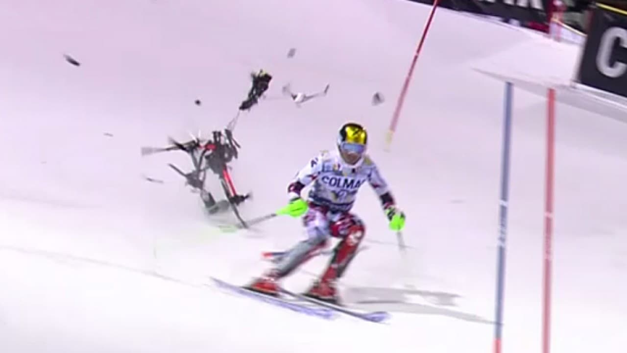 El drone se estrelló y casi golpeó al esquiador austriaco Marcel Hirscher durante un slalom en Italia.