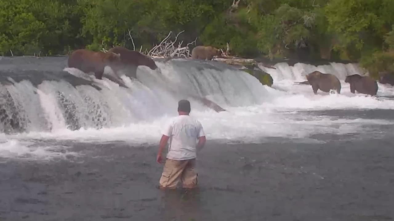 En el Parque Nacional Katami en Alaska un hombre se acercó peligrosamente a osos pardos para tomarle fotos. La imprudencia fue capturada en el livestream del parque.
