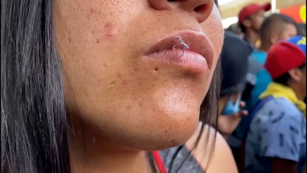 Migrantes centroamericanos y venezolanos, pertenecientes a un grupo de cientos de personas que permanecen varadas en la estación de autobuses de Monterrey, Nuevo León, protestaron cosiéndose la boca para exigir que les dejen abordar autobuses para dirigirse hacia la frontera con EEUU para buscar asilo.