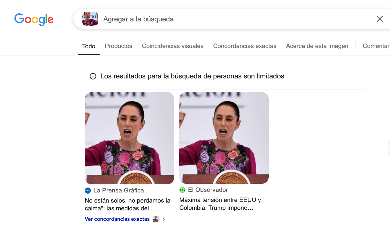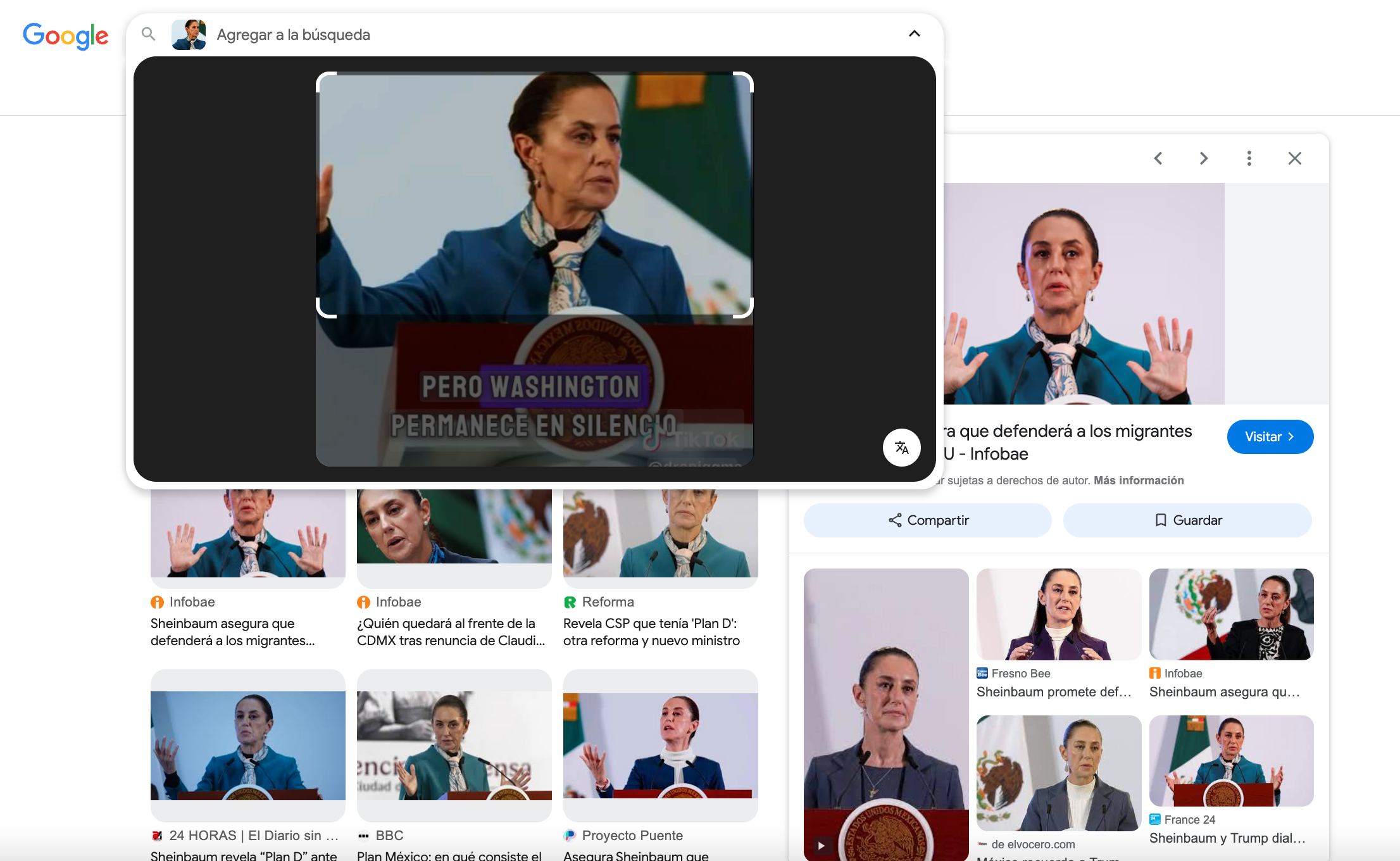 En el clip se comparten tres imágenes de la presidenta mexicana, mientras se asegura que “exigió” explicaciones al gobierno de Estados Unidos por la supuesta desaparición de inmigrantes deportados. Sin embargo, tras realizar búsquedas inversas en Google Lens, de las mismas encontramos que en ninguno de los eventos a los que corresponden las fotos dijo eso.