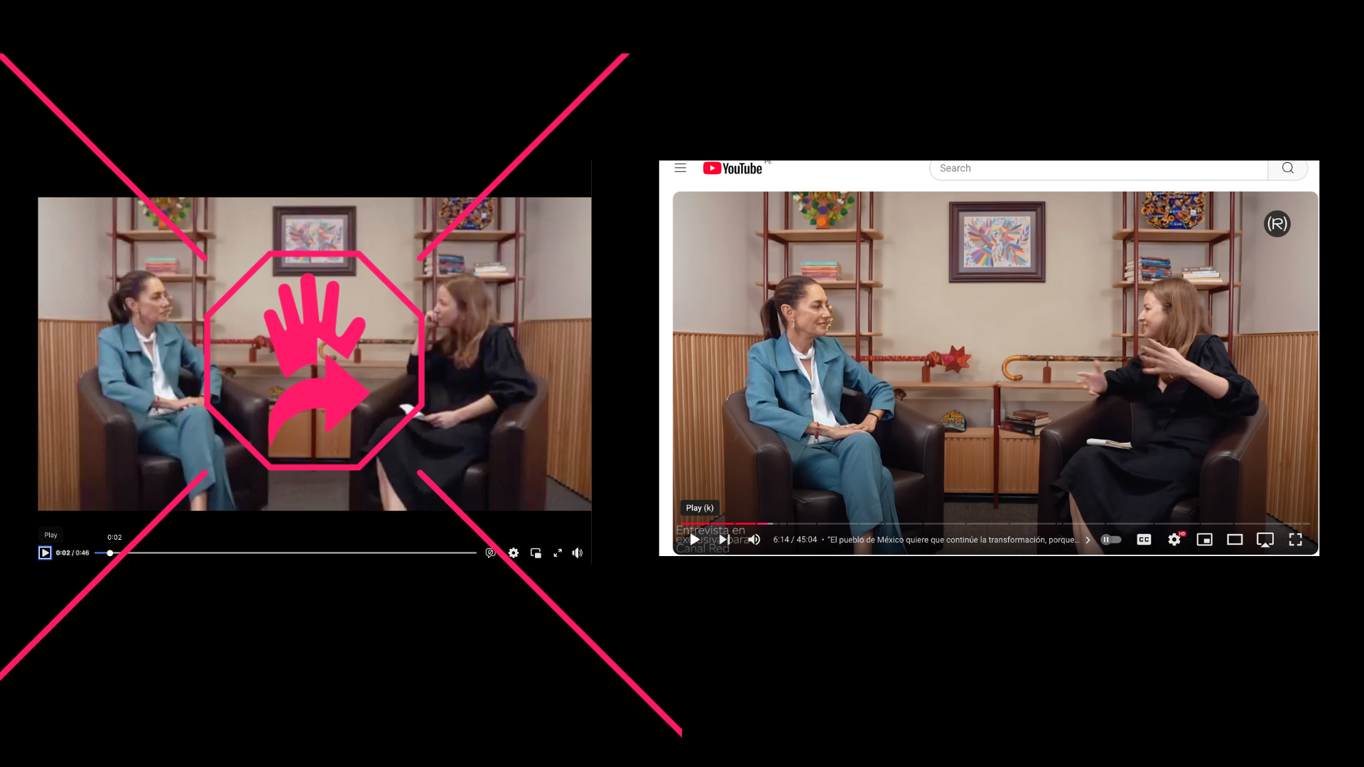 Sin embargo, también se aprecian diferencias de fondo. En la entrevista original no se menciona ninguna plataforma de inversión ni aparecen las personas que supuestamente ofrecen testimonios. En lugar de ello, la conversación se centra en temas como las propuestas de la política para las elecciones presidenciales de México, que se celebraron el 3 de junio y en las que resultó vencedora, su plan para los primeros 100 días al frente del Gobierno, el asalto a la embajada mexicana en Ecuador el 5 de abril de 2024 y la preferencia entre Joe Biden y Donald Trump.