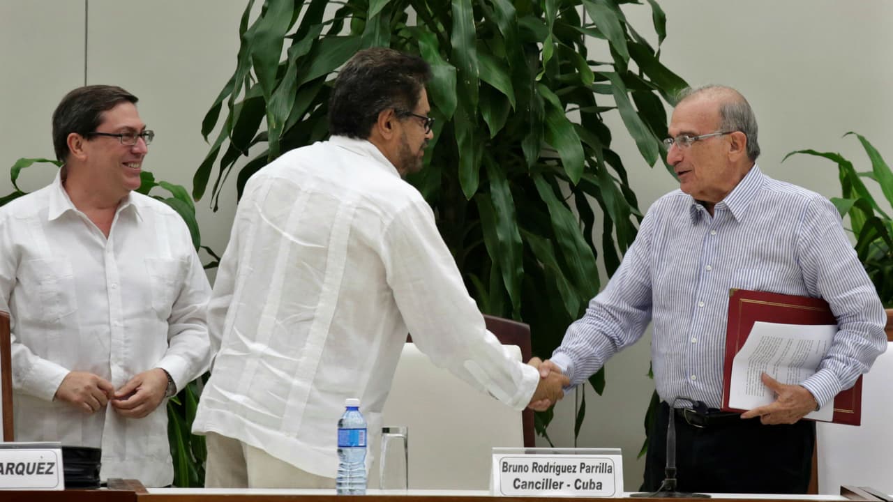 Londoño agradeció a los países que colaboraron, al país sede de la negociación: Cuba, y a los personajes que participaron. Destacó especialmente al movimiento LGBTI. "El país está harto de la violencia, de los estigmas y señalamientos, de las costumbres políticas, que cese la corrupción, la mentira y el engaño. La primera demanda nacional es que se ponga fin al uso de las armas en la política, que se garantice (...) protestar contra la arbitrariedad y abusos de funcionarios en el poder. Que la libertad del movimiento y el pensamiento sean reales. Por eso Colombia cierra filas en torno a este acuerdo definitivo.