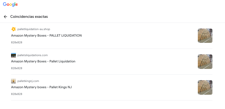 Las imágenes y las etiquetas son idénticas, salvo por el valor que muestran, lo que indica que las mismas no son auténticas y fueron añadidas digitalmente. Además, una búsqueda inversa de imagen en Google nos permitió encontrar la fotografía de las cajas apiladas pero sin ningún tipo de etiquetas sobre ellas.