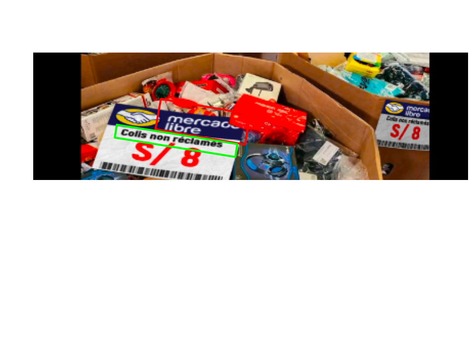En las publicaciones analizadas, además, hallamos inconsistencias en el idioma de las etiquetas que llevan las cajas, que no coinciden con la moneda en la que se expresa el supuesto valor de las mismas. En esta imagen, por ejemplo, encontramos que la etiqueta dice “Mercado Libre” y el precio es de 8 soles (moneda peruana que equivale a 2.10 dólares), pero “paquetes no reclamados” está escrito en francés; mientras que, en esta otra, vemos que “Mercado Livre” está en portugués y nuevamente marca 8 soles peruanos, aunque se lee “caja misteriosa” en inglés.
