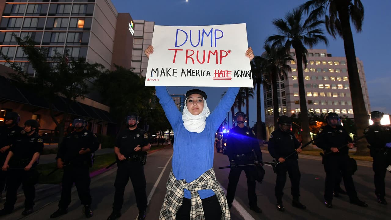 Las protestas contra el magnate se hicieron notar durante su rally en San José, California.