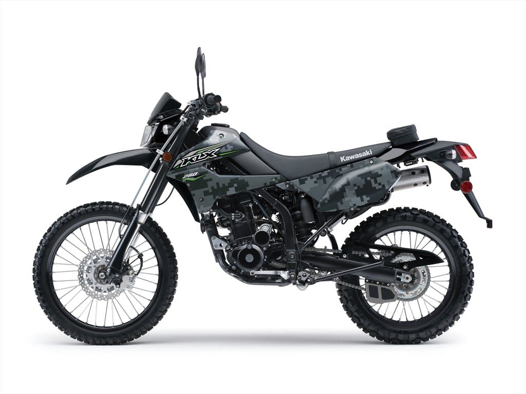 El precio inicial de la Kawasaki KLX250S 2018 en EEUU empieza en $5,349. Una de las opciones que sin duda será una de las más populares es el sticker tipo ‘camo digital’ que recubre casi todos los plásticos n su exterior.