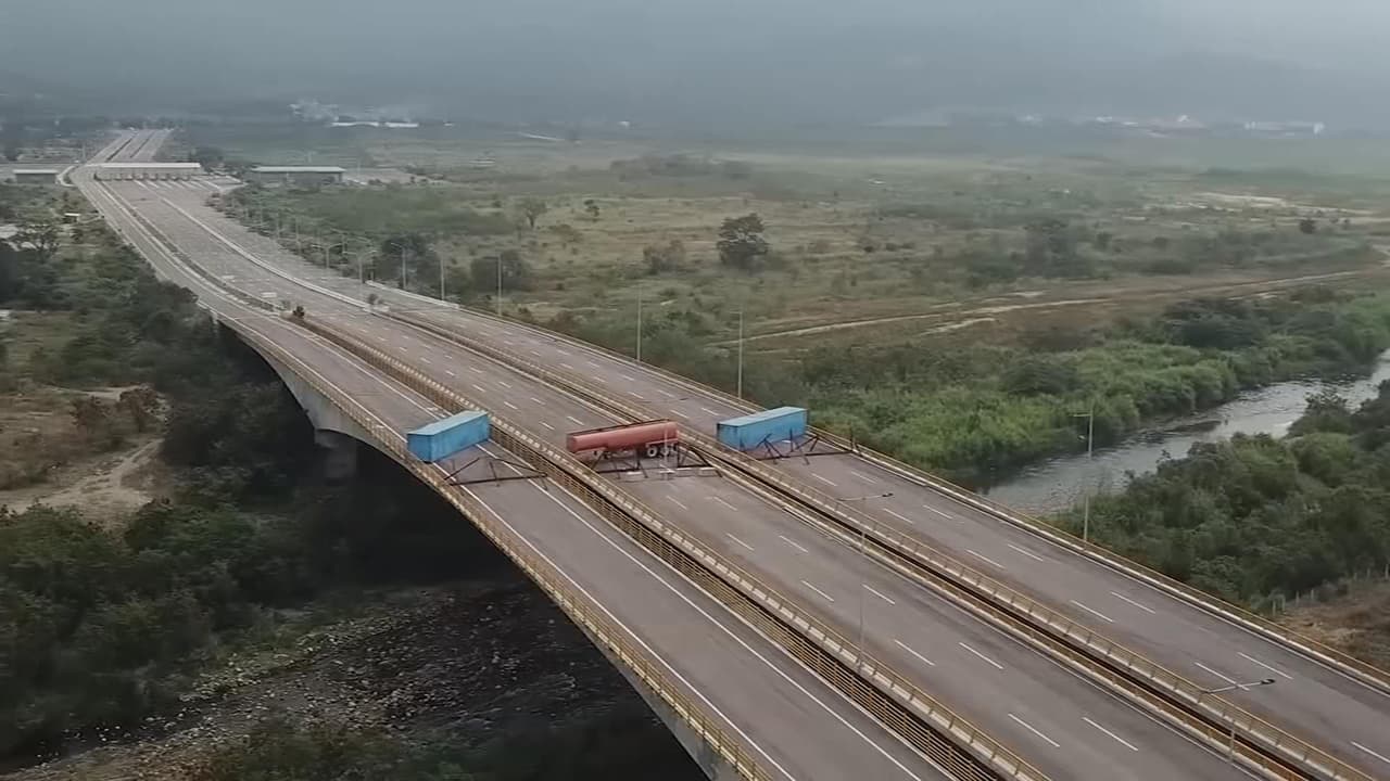 Puente fronterizo de Venezuela fue bloqueado con contenedores para trabar ingreso de ayuda humanitaria
