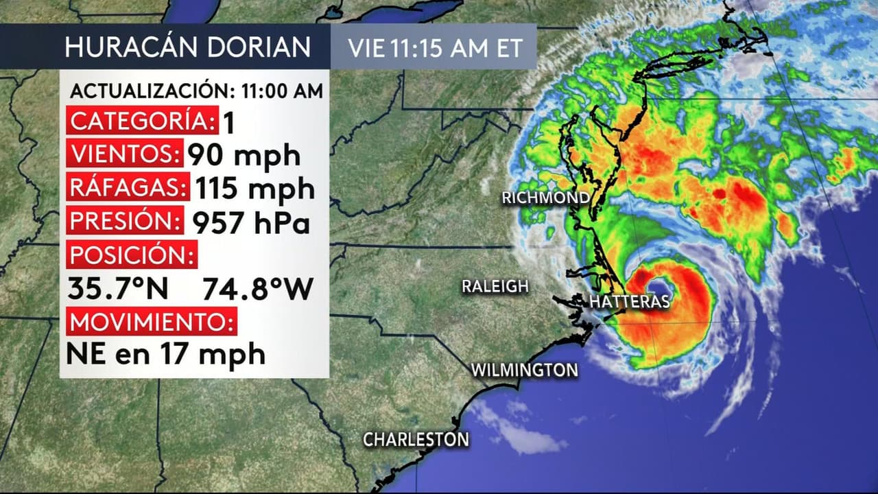 El ojo del huracán Dorian sigue avanzando por la costa de Carolina del Norte. Nuestro meteorólogo Albert Martínez no explica el último reporte del Centro Nacional de Huracanes.