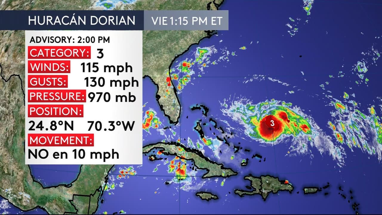 Reporte del Centro Nacional de Huracanes de las 3PM ET del 30 de agosto sobre el huracán Dorian