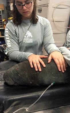 El manatí llegó al Centro de Conservación de Manatíes en delicado estado de salud, con múltiples golpes, incluidos dos en la cabeza y el costado que pudieron haber ocurrido cuando flotaba indefenso cerca del puerto.