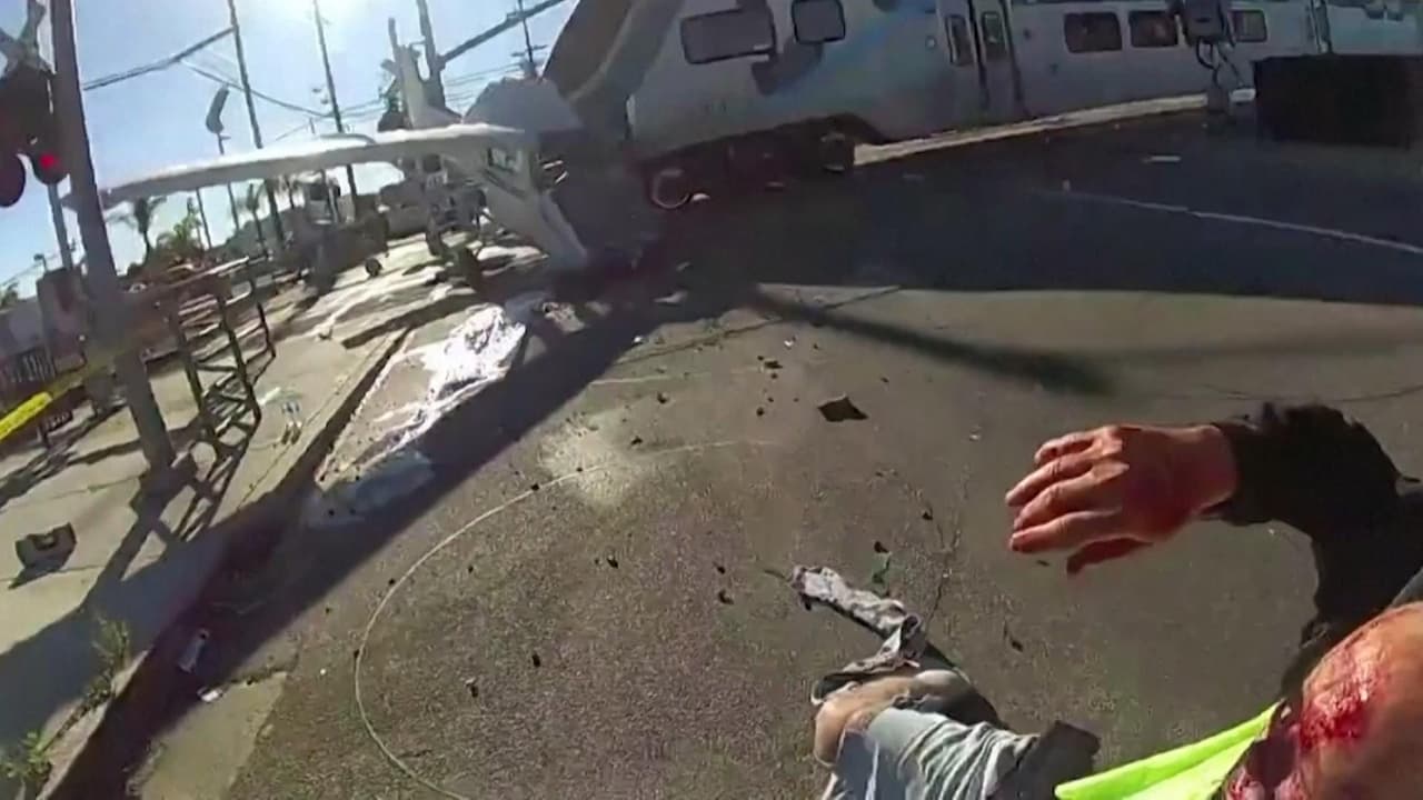 Agentes de la policía de Los Ángeles lograron extraer de la avioneta al piloto de la avioneta Cessna, que se estrelló poco después de despegar. El rescate lo salvó de ser embestido por el tren, que chocó segundos después con los restos de la aeronave, sin dejar heridos.