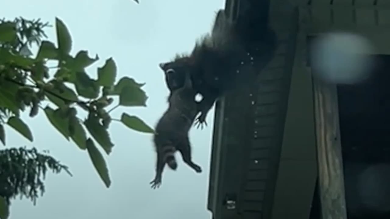 Una pareja presenció cómo un mapache acrobático salvó a su cría de caerse del tejado de una casa en Pensilvania, en una hazaña impresionante digna de una película de acción taquillera. Hannah Glancy contó a Storyful que ella y su esposo estaban repartiendo un pedido de DoorDash cuando levantaron la vista y vieron la increíble escena. En el video, el esposo de Glancy dice: "¡Esa es la voluntad de una mamá!".