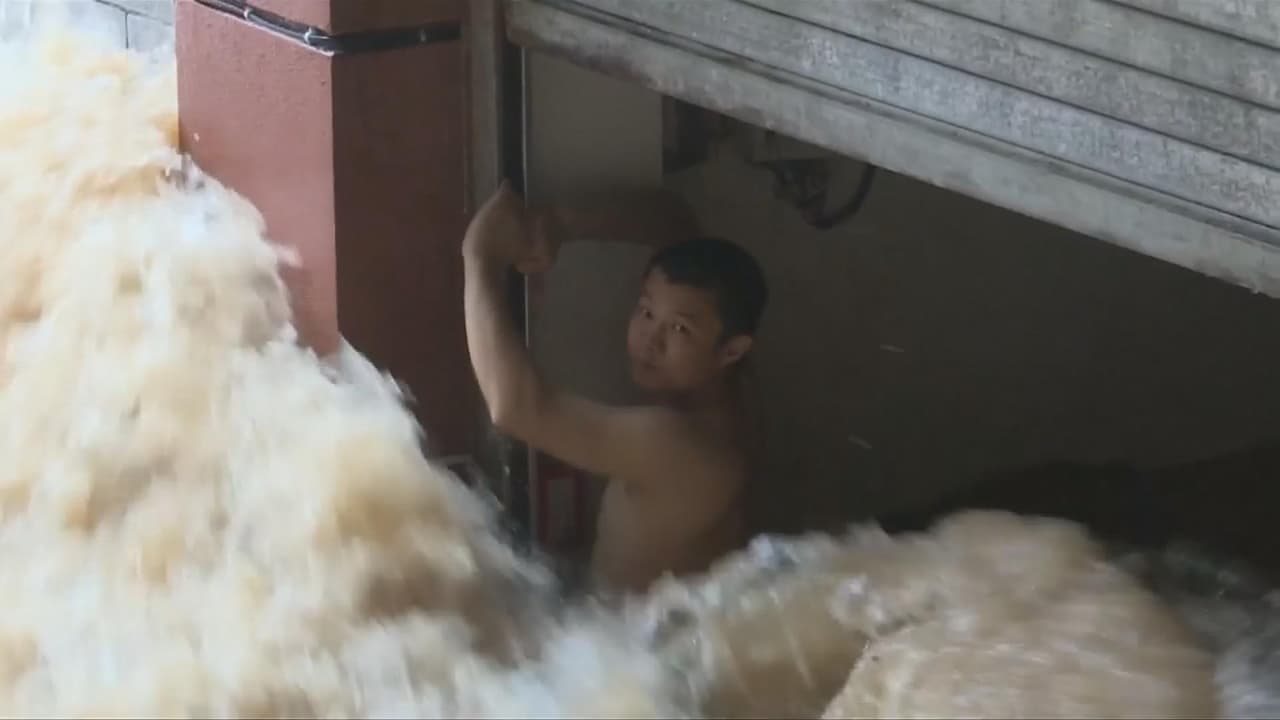 Luego de ayudar a varias personas a sacar sus autos del estacionamiento donde trabaja, el hombre quedo prisionero por una intensa corriente generada por las incesantes lluvias que han caído los últimos días en China.