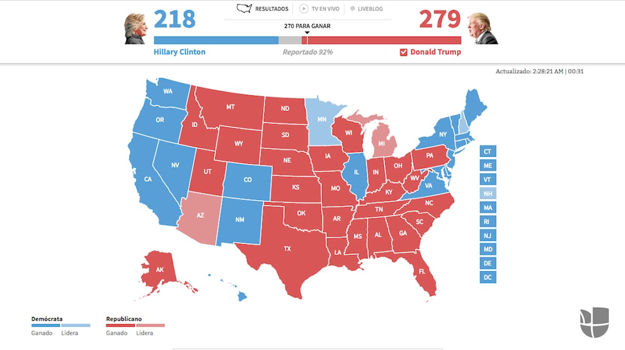 Minuto a minuto revisa como se fueron contando los votos en todo el país para dar como ganador a Donald Trump.